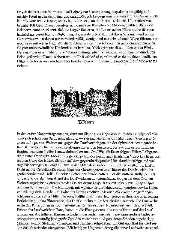 Hier wird die Schlacht bei Möckern, nördlich von Leipzig am 16. Oktober 1813 behandelt. Blücher siegte hier mit seiner Schlesischen Arme über die französischen Truppen unter Marmont.